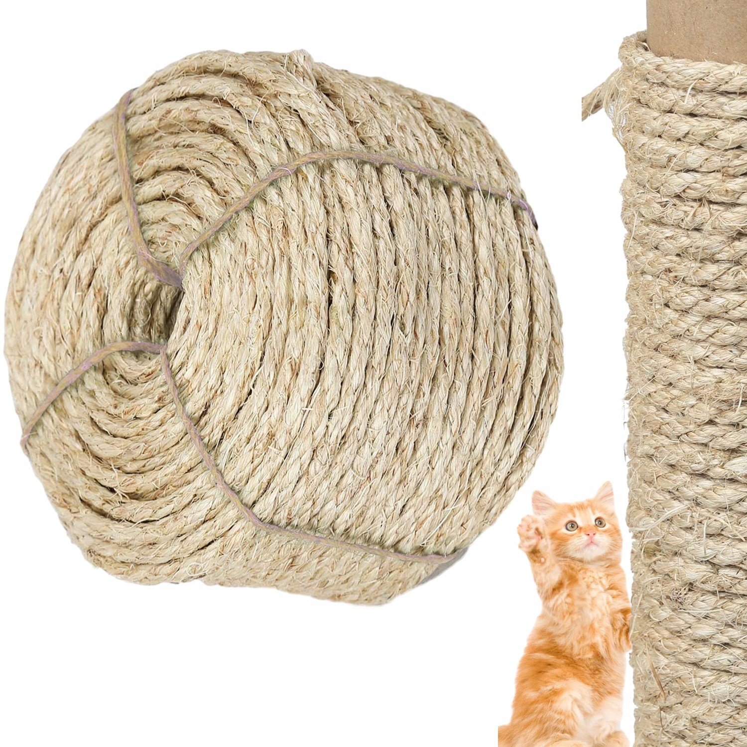 KOKOSOVÁ LANKA SISALOVÁ VÝMĚNNÁ ŠŇŮRA PRO ŠKRABADLO PRO KOČKY 8 mm 50 m 2 ksInformace o výrobku:Sisalový lanový válec o rozměrech 8 mm × 100 m, lehký a s vynikající délkou, dostatečný pro uspokojení vašich potřeb. Sisalové lano je extra silná, snadno se používá a je opakovaně použitelné. Lze jej použít k obalení závěsných škrabadel pro kočky a k nahrazení škrabadel pro kočky.Vysoce kvalitní materiály:Nebyly přidány žádné chemické prostředky. Sisal je tvrdé vlákno, které je pevné a odolné proti tření. Sisalové lano je vyrobeno ze 100% přírodního sisalu a je 100% biologicky rozložitelné. Díky tomu jej můžete bezpečně používat vy i vaše kočka po dlouhou dobu, aniž by došlo k poškození zdraví.Aplikace:Sisalové lano je velmi snadné na použití, stačí vám pistole na lepení za tepla. Použijte horkou lepicí pistoli k přilepení sisalového lana, poté jej rovnoměrně omotejte kolem předmětů, které chcete vyrobit, a nakonec jej znovu přilepte pomocí horké lepicí pistole, abyste získali nový žebřík pro kočky.Má mnoho využití:Kočky si musí brousit drápky. Naše sisalové lano lze snadno přeměnit na drahé lezecké stromky pro kočky a lze jej použít k nohám stolů, rohů stoliček, prken a zahradních židlí. Navíc je sisalové lano vhodné také pro zdobení domu a výrobu různých řemesel. Skvěle s