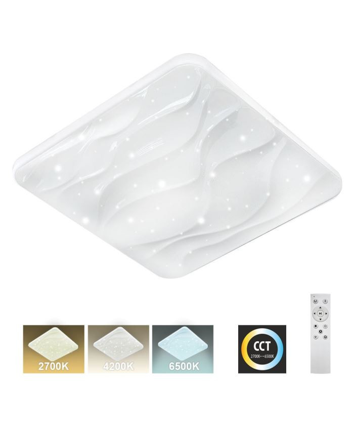 LED stropní svítidlo TR-610S - NERIS Trixline v bílé barvě se třpytivým efektem je určeno do vnitřních prostor jako jsou obývací pokoje, ložnice, haly, kanceláře, chodby a podobná místa. Pomocí přiloženého ovladače můžete přepínat mezi třemi světelnými teplotami v rozmezí 2700K až 6500K, které lze stmívat dle potřeby pro navození příjemné atmosféry. Při maximálním ztlumení klesá spotřeba až na pouhých 8W z původních 60W, což zaručuje úsporu energie. Další možností na dálkovém ovladači je i noční režim a funkce 30 vteřin po jejichž uplynutí se LED svítidlo samo vypne. Svítidlo si po vypnutí pamatuje poslední nastavený režim, což zajišťuje pohodlné a intuitivní používání.V nabídce máme světlo NERIS také ve variantě TR-609S - NERIS 36W 3420lm 43x43cmVýkon: 60WSvětelný tok: 5700lmTeplota světla: 2700K - 6500KMateriál: PP (plast) + kovTvar: čtverecVnější rozměr světla: 530x530x75mmZpůsob montáže: přisazenýBarva: bíláMožnost stmívání: anoÚhel vyzařování: 120°Indexpodání barev: Ra ?80Krytí: IP20Napětí: AC 220~240VFrekvence: 50/60HzObsah balení: LED stropní svítidlo TR-610S - NERIS, ovladač (2xAAA baterie není součástí), 4x šroubky (délka 2,5cm, křížová drážka) , 4x hmoždinky (délka 2,5cm), návod k použití