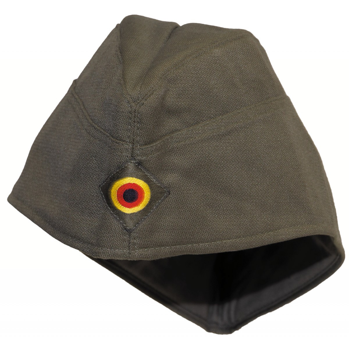 Originální německá lodička z kvalitní zelenošedé bavlněné tkaniny moleskin. Včetně přišité barevné kokardy na čelní straně. Pocházející z výstroje německé armády Bundeswehr.
