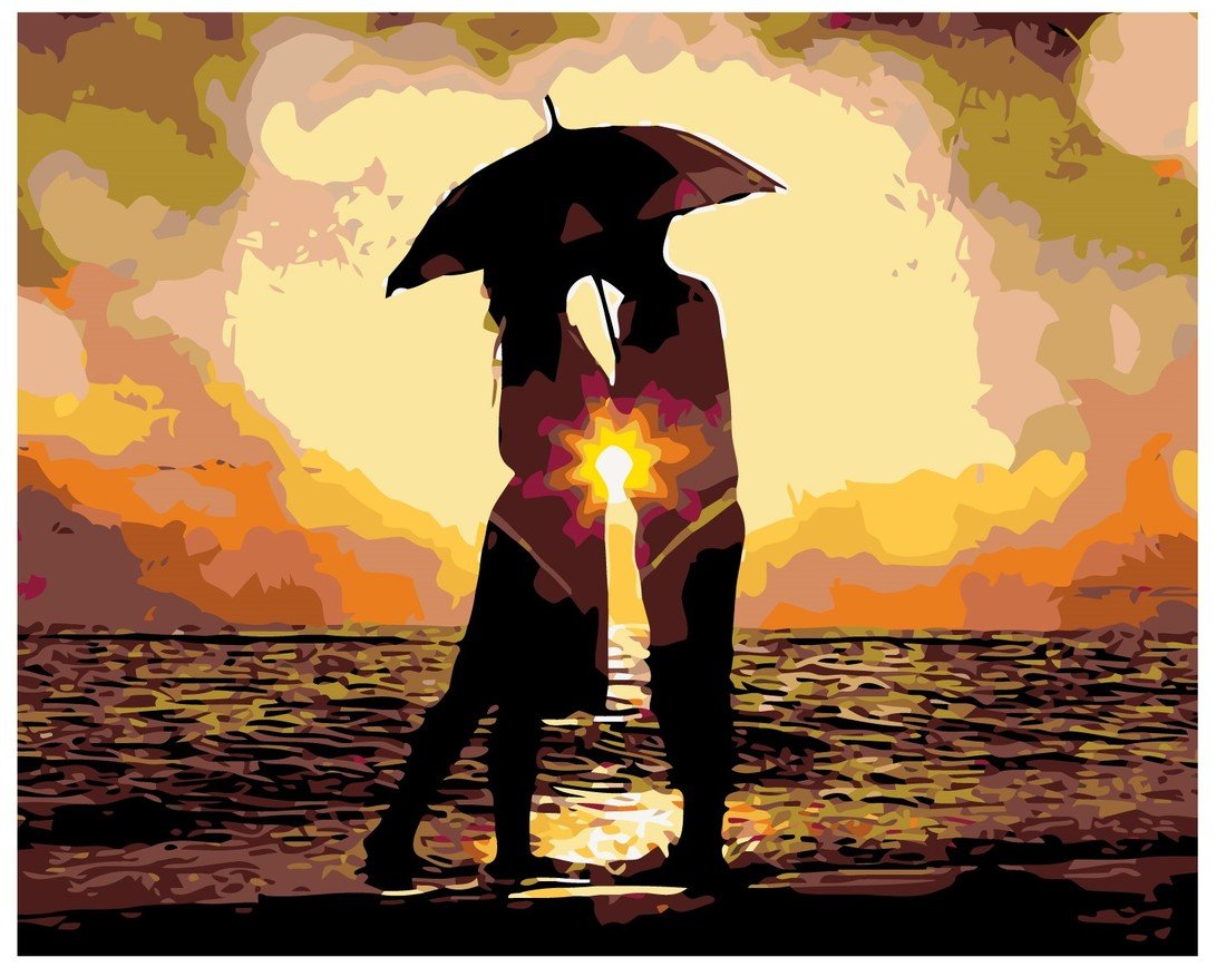 MALUJEŠ Malování podle čísel - POLIBEK POD DEŠTNÍKEM Rozměr: 80x100 cm, Rámování: vypnuté plátno na rám