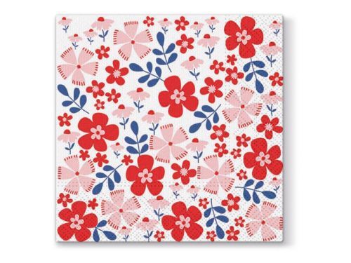 Třívrstvý papírový ubrousek - Krásné kvalitní ubrousky s motivem různobarevných květin dodají prostřenému stolu nádech a vykouzlí příjemnou atmosféru. Ideální na zahradní stolování, oslavy nebo k ozdobení interiéru, zkrášlíte tak každé prostírání.