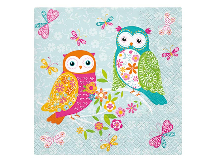 Třívrstvý papírový ubrousek. Krásné kvalitní ubrousky s motivem soviček vykouzlí příjemnou atmosféru. Ideální na zahradní prostírání, oslavy nebo na zkrášlení interiéru.