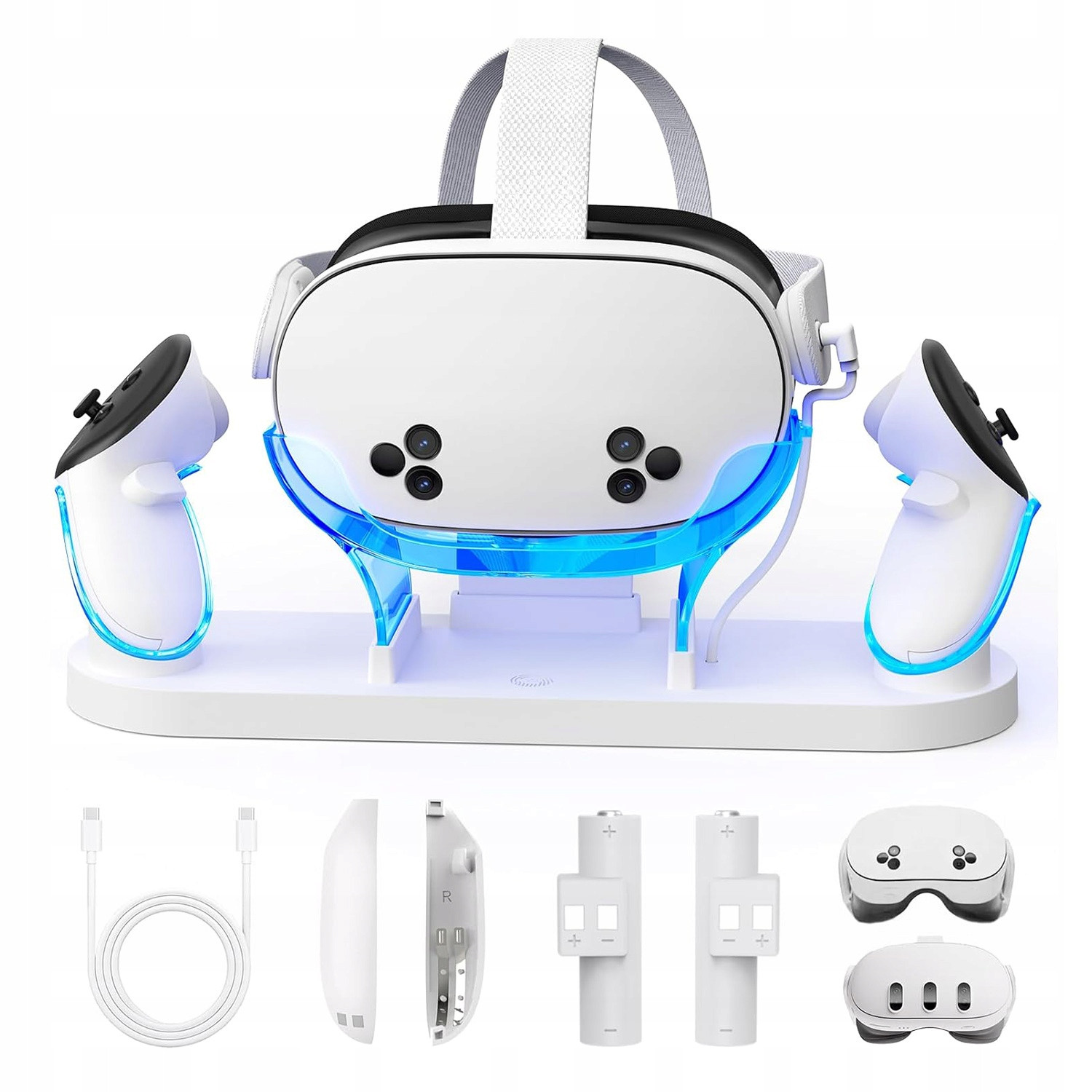 Funkce:Rychlé a bezpečné nabíjení: Zažijte bleskově rychlé nabíjení s naším nabíjecím dokem navrženým speciálně pro Meta Quest 3 a Quest 3S. Plně nabijte náhlavní soupravu za pouhé 2-3 hodiny a ovladače za přibližně 3 hodiny. Tento nabíjecí dok, vybavený pokročilými bezpečnostními funkcemi, včetně ochrany proti přebití a zkratu, zajišťuje bezpečnost a dlouhou životnost vašich zařízení při každém nabíjení.Nákladově efektivní a šetrný k životnímu prostředí: Nabíjecí stanice se dodává se dvěma kryty ovladačů a dvěma vlastními dobíjecími bateriemi, přizpůsobenými pro ovladače Quest 3 a Quest 3S. Tyto vysokokapacitní baterie lze dobít více než 1000krát, což eliminuje potřebu neustálých výměn. Užijte si klid s vědomím, že děláte ekologičtější volbu, a zároveň vylepšujte svůj herní zážitekRozšířená kompatibilita: Speciálně navrženo pro náhlavní soupravy Quest 3 a Quest 3S (není kompatibilní s Quest 2). Náš nabíjecí dok je vybaven stabilní konstrukcí stojanu, do které se vejde jakýkoli popruh baterie, včetně originálního popruhu a různých elitních popruhů třetích stran, což zajišťuje všestrannost a spolehlivost.Uklizený a elegantní design: Udržujte svůj herní prostor elegantní a organizovaný díky našemu stylovému nabíjecímu doku pro příslušenství VR. Vaše náhlavní sou