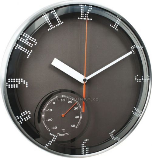 Kovové nerezové hodiny s teploměrem mají moderní design a proto se zaujmou na první pohled.
