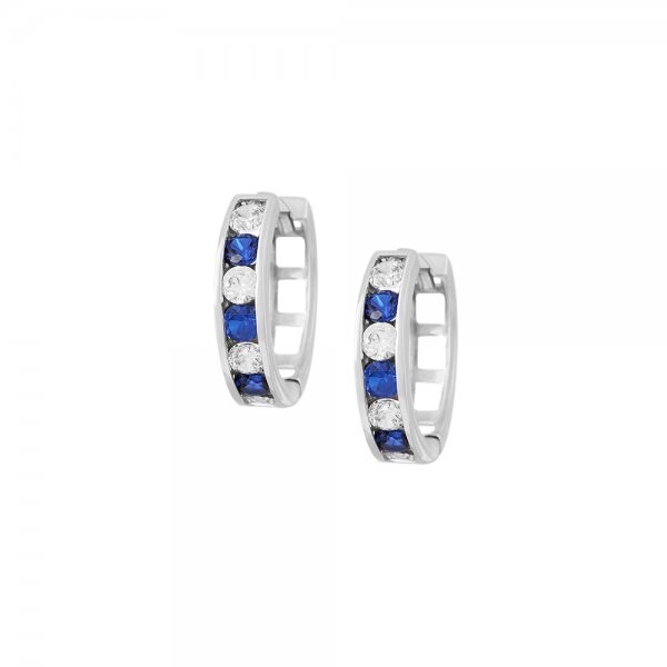 Oživte svůj look s těmito elegantními dámskými náušnicemi. Kruhy z bílého zlata, jež ve světě módy byly, jsou a budou vždy in, jsou vykládané zářivými syntetickými kamínky v módní modro-bílé kombinaci.