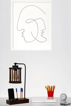 Opviq Table Lamp Zen ahşap ceviz kafesli masa lambası Brown