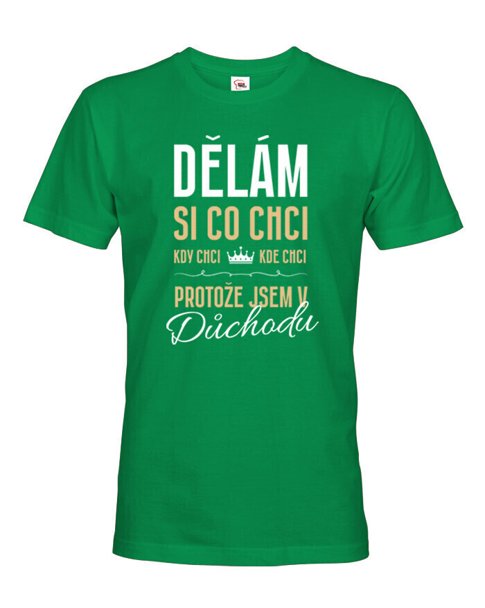 Tričko s nápisem „Dělám si, co chci, kdy chci, kde chci, protože jsem v důchodu“ vystihuje přesně to, co si každý důchodce zaslouží – klid, humor a život podle vlastních pravidel.
