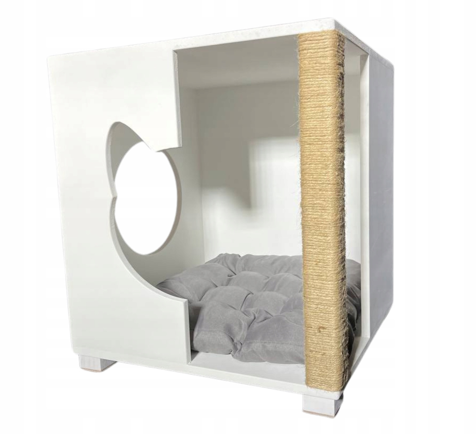 Představujeme novou budku pro kočky, která kombinuje pohodlí, styl a praktičnost. Budka je navržena s ohledem na pohodlí vašeho mazlíčka a nabízí mu prostorné a otevřené místo k odpočinku.Materiál: Vysoce kvalitní MDF, robustní a s dlouhou životností, pokrytý akrylovou barvou bezpečnou pro zvířata.Rozměry: 35x35x35 cm — optimální velikost poskytující dostatečný prostor pro menší i větší kočky.Barva: Klasická bílá, která zapadne do každého typu interiéru a dodá mu eleganci a moderní vzhled.Funkčnost:Škrabadlo v podobě sloupku umístěné na rohu budky, vyrobené z odolných materiálů. Škrabadlo nejen uspokojuje přirozenou potřebu škrábání u koček, ale také představuje vynikající zábavu, pomáhá udržovat zdravé drápy a chránit nábytek. Otevřený design: Navrženo tak, aby poskytovalo snadný přístup do vnitřku budky a zároveň umožnilo kočce volně pozorovat okolí. Je to ideální místo jak pro relaxaci, tak pro zábavu. Stabilita a ochrana podlahy: 2 cm vysoké nohy jsou vybaveny plstěnými podložkami, které zabraňují pohybu budky a chrání podlahu před poškrábáním.Komfort a péče: Součástí balení je měkký odnímatelný polštář, který poskytuje pohodlné místo k ležení a snadno se udržuje v čistotě – lze jej prát v pračce.T