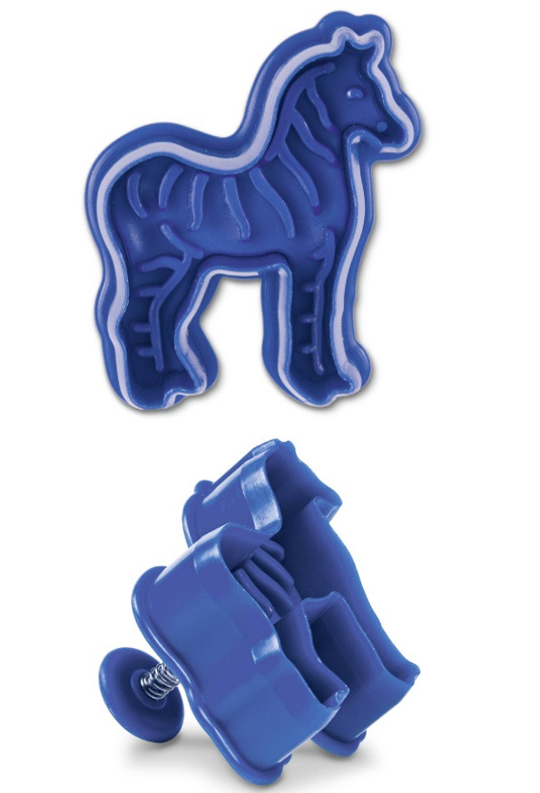 Plastový vypichovač na marcipán s pístem ve tvaru zebry je vyrobený německou firmou Städter.