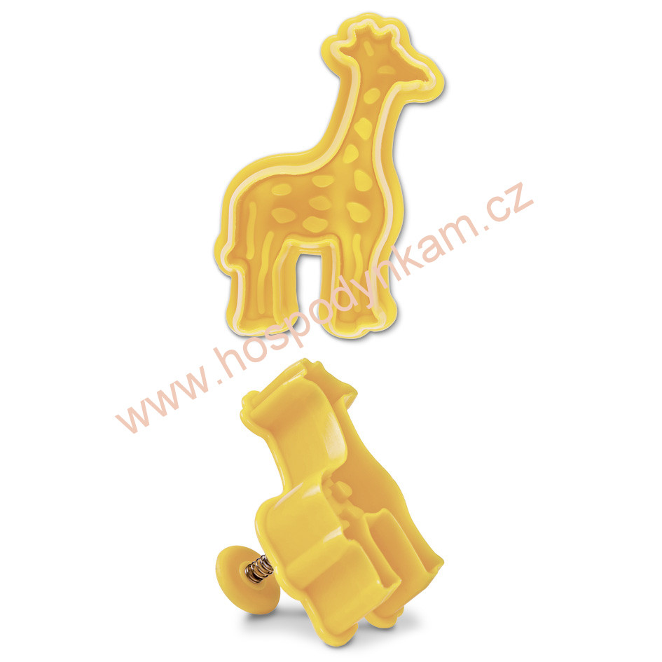 Plastový vypichovač na marcipán s pístem ve tvaru žirafy slouží jako pomůcka pro vytlačení vzoru do marcipánu a následnému zdobení dortů, nebo jej můžeme použít jako vykrajovačku těsta, ze kterého upečeme sušenky.