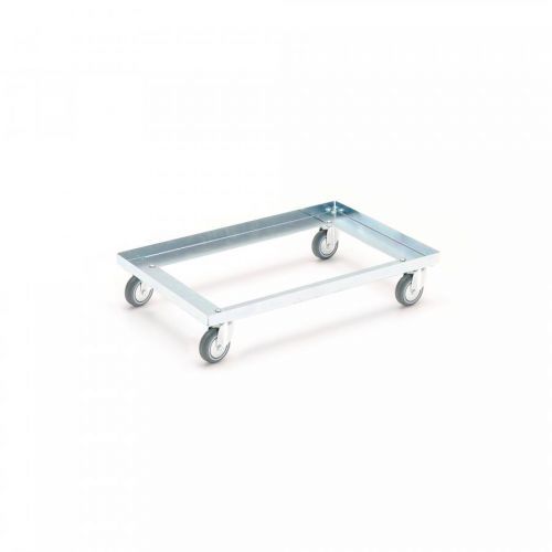 Stohovatelný podvozek pro přepravky se zvýšenými okraji. Zjednodušte si přepravu materiálu na vašem pracovišti pomocí tohoto stohovatelného podvozku pro přepravky s rozměry 600x400 mm. Kovový rám je 1,5 mm silný, má 25 mm vyvýšené okraje a otevřené rohy. Vyvýšené okraje, které drží přepravky na vozíku, mohou být pro snadnější vyndávání přepravek namontované i směrem dolů. Vyberte si z osazení 4 plně otočnými kolečky nebo 2 pevnými a 2 otočnými.