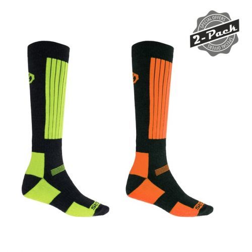 Set dvou párů vysokých teplých ponožek Sensor Snow ve dvou barevných provedeních. Ponožky mají sendvičovou konstrukci a jsou ideální na všechny zimní sporty. Ponožky jsou anatomicky tvarované a na holeních mají zesílený materiál pro větší pohodlí. Pata a špička jsou vyztuženy.