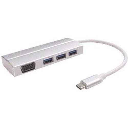 PremiumCord Adaptér USB 3.1 Type-C male na VGA female + 3x USB 3.0 stříbrný