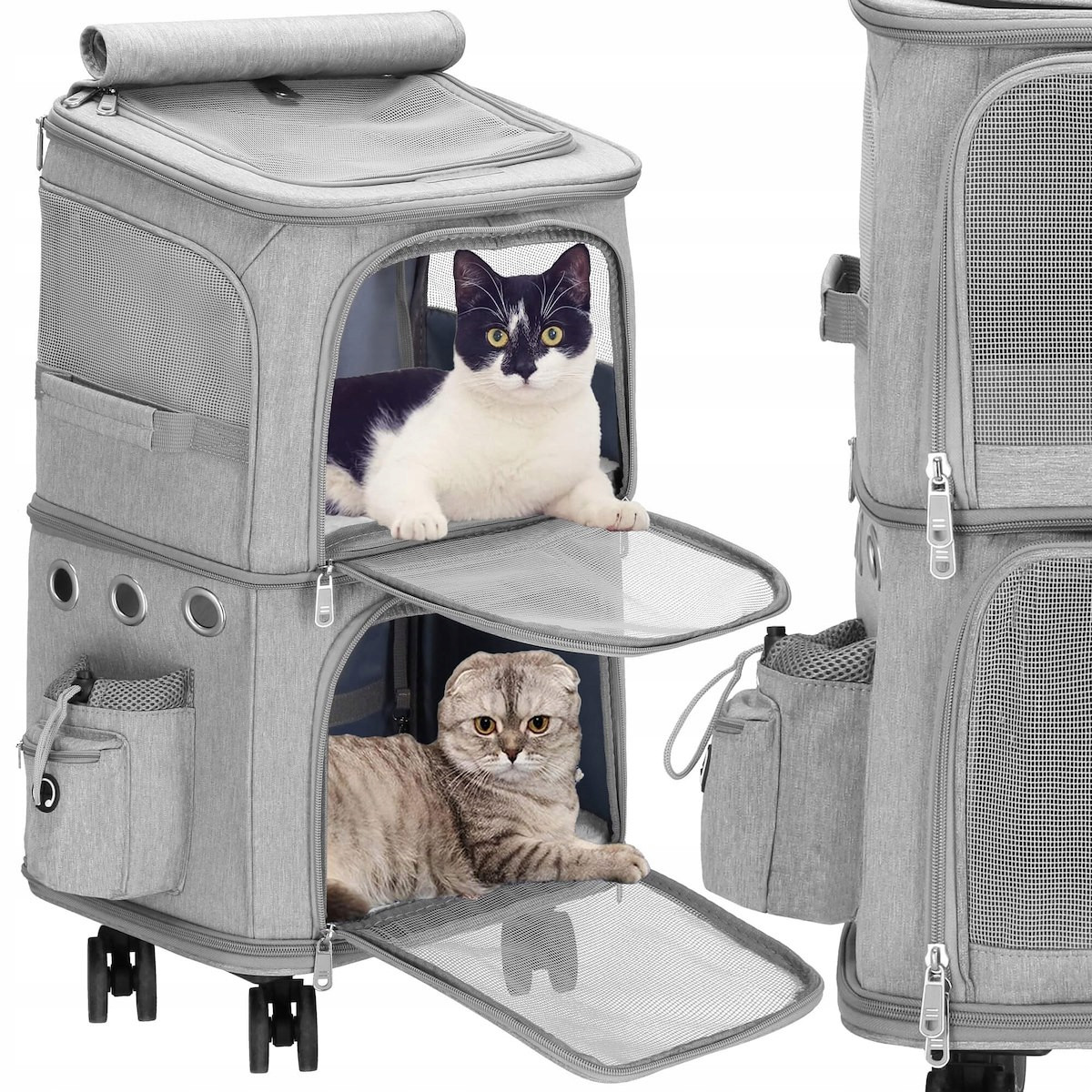 Přepravka pro psy a kočky 2-patra na kolečkách SPRINGOS PA0326 šedá je praktickým a stylovým řešením pro přepravu domácích mazlíčků. Tento model nabízí dvě samostatné přihrádky, které umožňují pohodlnou přepravu dvou zvířat současně, nebo lze horní komoru složit a vytvoři