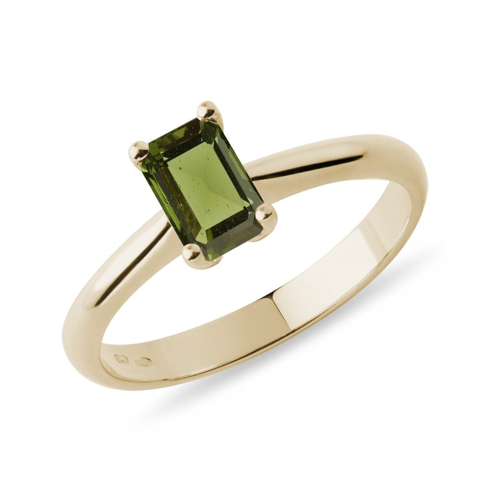Obchody, které prodávají Prsten ze žutého zlata s vltavínem v brusu octagon KLENOTA