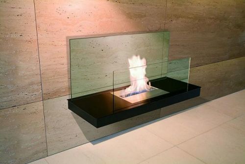 Hoření na bázi: bio-ethanolu, Umístění krbu: na stěnu, Výška: 400, Délka: 800, Hloubka: 350, Materiál: nerezová ocel, čiré sklo, Barva: černá, Regulace plamene: pomocí posuvných křídel hořáku