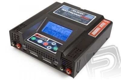 Dvojitý mikroprocesorový rychlonabíječ až 2x 500W (při napájení >24V) s balancery pro 1-18 čl. NiCd/NiMH, 1-7 čl. Li-poly/Li-ion/Li-Fe, 2-24V Pb proudem 0,1-20A. Vybíjení max. 10A. Napájení 12 -28 V. PC USB port, 2x vstup teplotní čidlo.