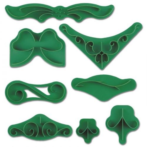 Oblíbené vzory pro naražení do krémového nebo potaženého moučníku - vzor zajistí stejný tvar pro dokonalost vašeho zdobení. Sada obsahuje 7 vzorů raznic.