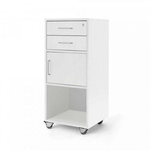 Je vybaven dvěma zásuvkami, dvířky a otevřenou přihrádkou. Nabízí tak spoustu úložného prostoru na pořadače, desky s dokumenty apod.