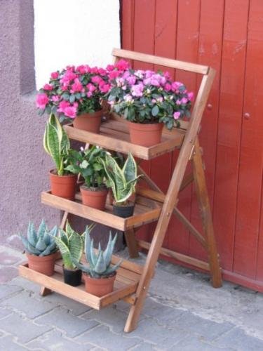 Dřevěný schůdkový květináč - v hnědé barvě.