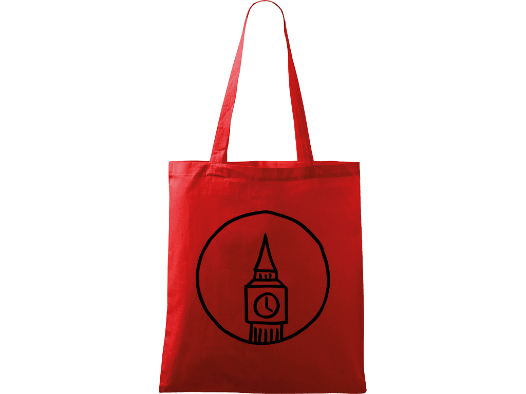Ručně malovaná plátěná taška Handy - Big Ben Barva tašky: ČERVENÁ, Barva motivu: ČERNÁ