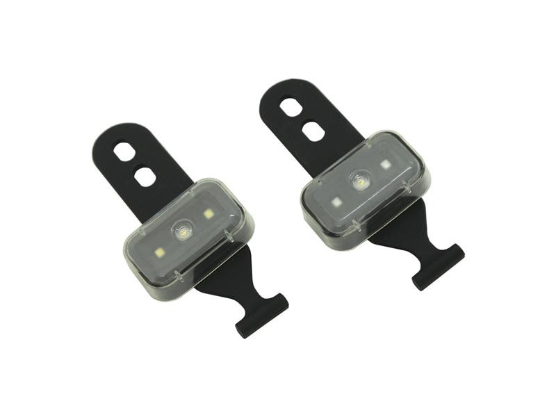 Svítilna na kolo, kočárek, či koloběžku s jednoduchým systémem upevnění pomocí pružných silikonových objímek s přezkami.Lze snadno připevnit např. na řidítka, tyč pod sedlem, či jinou část jízdního kola. Lze použít na řidítka s různými průměry. Světlo je pomocí přezek možné upevnit i na opasek.Sada je složena ze dvou kusů, kdy jedno světo je bílé a jedno červené, každé světlo je opatřeno dvěma LED. Napájení je řešeno bateriemi CR2032 (jsou součástí).Technické parametry:- sada: bílé a červené světlo- světelná jednotka: 2x LED (každé světlo)- napájení: 2x baterie CR2032 (každé světlo)