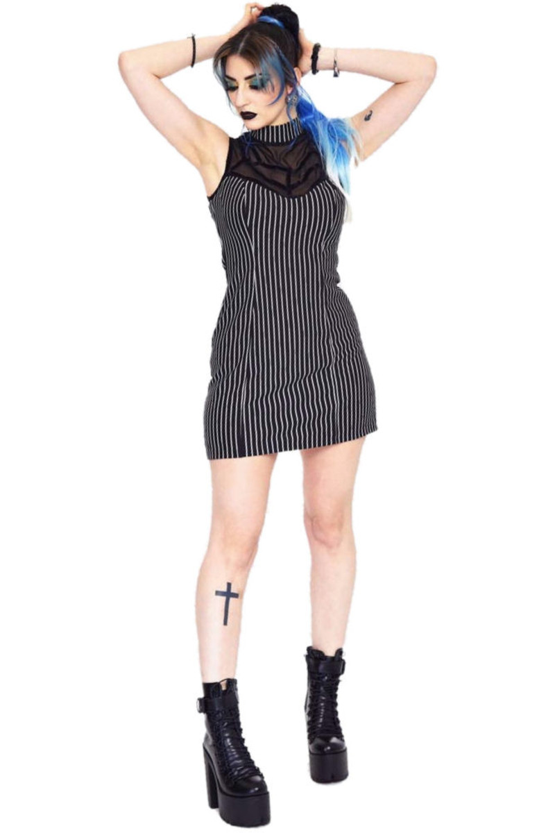 Obchody, které prodávají šaty dámské JAWBREAKER - Pinstripe Spiderweb - Black XS