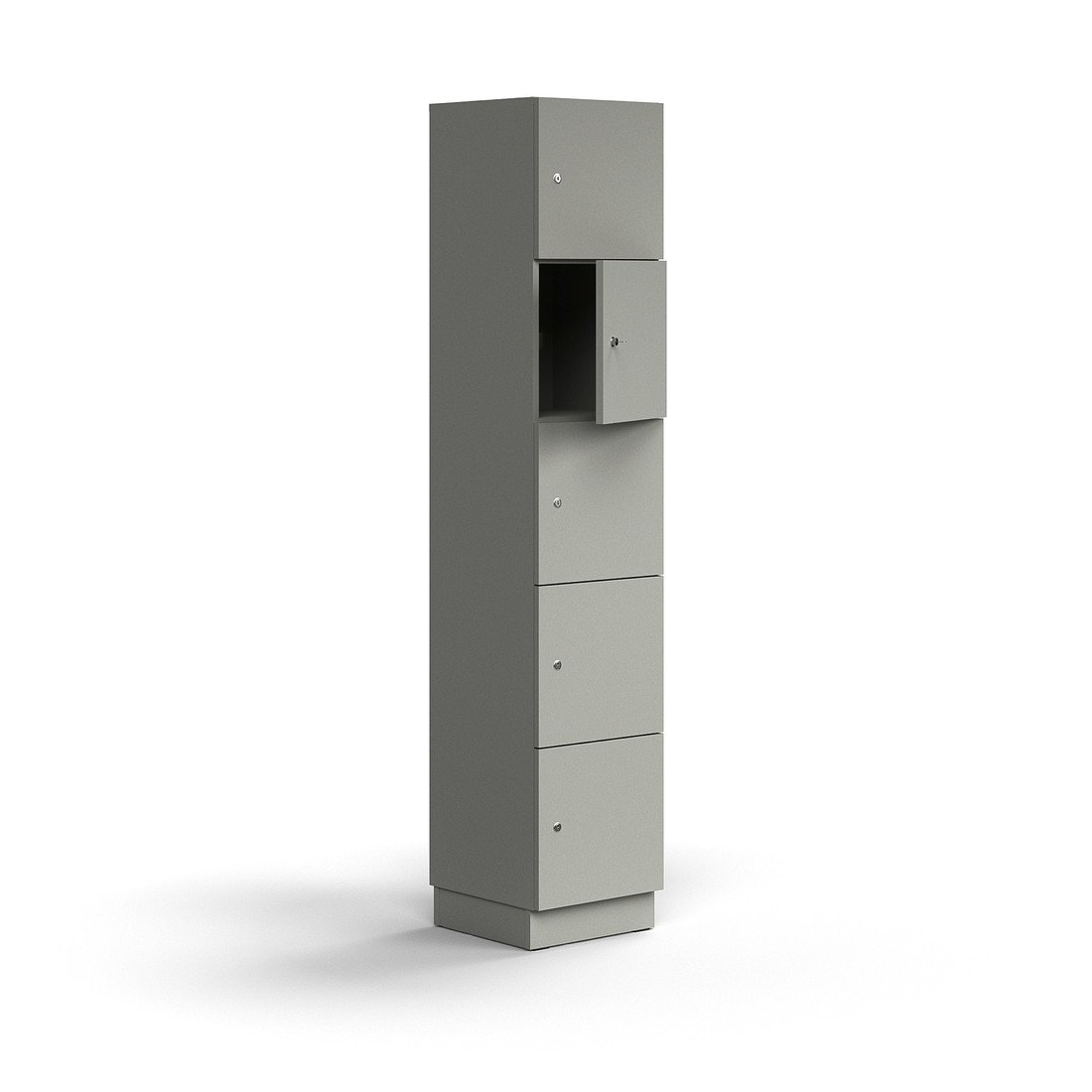 Obchody, které prodávají Skříň QBUS, 5 uzamykatelných boxů, sokl, 2020x400x420 mm, světle šedá