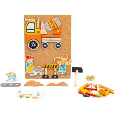 Zábava na staveništi s kladivem a ozdobným hřebíkem! Tato hra s kladívky, korkovou deskou, kladívkem, hřebíky a různými dřevěnými prvky umožňuje vytvářet četné motivy na téma staveniště. Ať už se jedná o stavebního dělníka, míchačku na beton, jeřáb nebo bagr, tato sada obsahuje vše potřebné k vytvoření různých obrázků staveniště. Pokud na začátku stále hledáte nápady, stačí si vzít osm šablon obrázků a začít! Tato dovednostní hra podporuje kreativitu a dává prostor pro vlastní výtvory a obrázky. Je zabalen v praktické krabici, takže se nic neztratí. Podrobnosti o produktu: Rozměry korkové desky (délka x šířka x výška): cca 24 x 17 x 1 cm rozměry kladiva (délka x šířka): 14 x 4 cm Materiál: dřevo, plast, Metal l, papír/karton Obsah: 149 dílů Věk: od 6 let