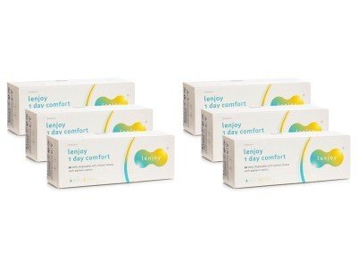 Lenjoy 1 Day Comfort jsou jednodenní kontaktní čočky vyrobené jednou z nejmodernějších technologií, jejíž vývoj a výzkum probíhá ve Velké Británii. Špičková kvalita čoček Lenjoy 1 Day Comfort nabízí vynikající vizuální výkon, dlouhodobý komfort nošení a optimální zdraví očí. S biologicky kompatibilní hydratační technologií, protiskluzovou úpravou, ochranou proti UV záření a světlemodrým zabarvením pro snadnější manipulaci jsou čočky Lenjoy 1 Day Comfort skvělou volbou. Kontaktní čočky Lenjoy 1 Day Comfort obsahují velké množství vody, která je podstatou pohodlného používání čoček. Čočky Lenjoy 1 Day Comfort jsou vyráběné s využitím exkluzivní hydratační technologie, která váže vodu a udržuje čočky svěží a hydratované po celý den. Čočky tvoří hydrogenní vazbu s vodou a molekuly se tak stávají součástí čočky a zabraňují vysychání očí. Unikátní design čoček se vyznačuje dvojitou zúženou hranou, která umožňuje cirkulaci vody a kyslíku kolem oka. Čočka zůstává na svém místě a při mrkání nedochází k nepříjemnému tření čočky a očního víčka. Riziko podráždění je tak minimalizováno. Jedinečný asférický design čoček Lenjoy 1 Day Comfort snižuje sférickou aberaci a pomáhá tak k vyšší ostrosti vidění i v horších světelných podmínkách např. při řízení za šera, při práci s počítačem nebo při sportovní aktivitě