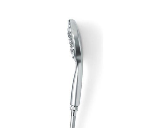 Sprchová hlavice ve wellness stylu Barva: Matná chromová Materiál: Tělo a rukojeť: akrylonitrilbutadienstyren, termoplastický elastomer (termoplastická guma) Vnitřní díly: 100 % polyoxymethylen Nopky proti vodnímu kameni: 100 % termoplastický elastomer (termoplastická guma) Hadice: 100 % polyvinylchlorid Kónus: kov Rozměry: Ø sprchové hlavice cca 13 cm Délka hadice cca 170 cm Obsah: Včetně hadice, spořiče vody a návodu k použití Sprchová hlavice s přívalovým proudem3 různé druhy vodního paprsku, včetně přívalového prouduS nopky proti vodnímu kameniS tlačítkem k přepínání druhu paprskuVhodná pro běžně prodejné 1/2" přípojkyVčetně hadice, délka cca 170 cmEkologicky šetrná: vyjímatelný spořič vody snižuje průtok vody při sprchování