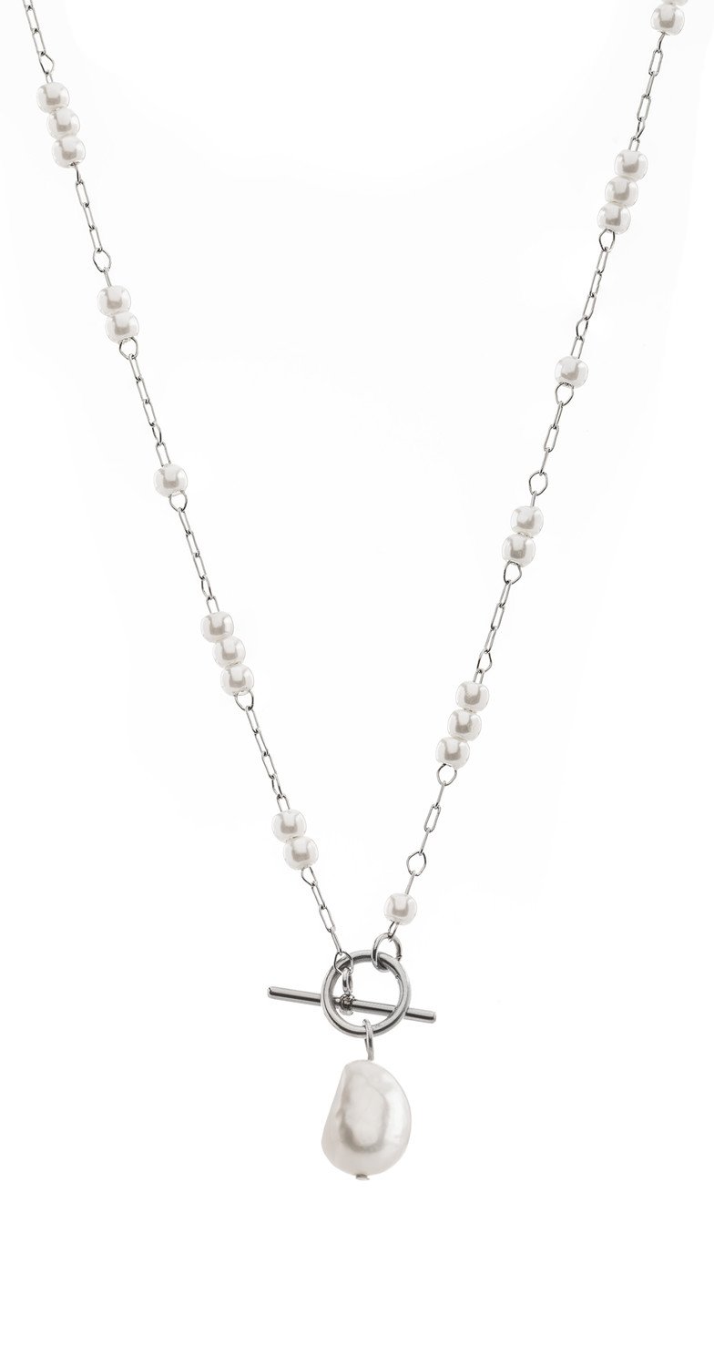 Troli Elegantní ocelový náhrdelník s barokní perlou VABQJN061S