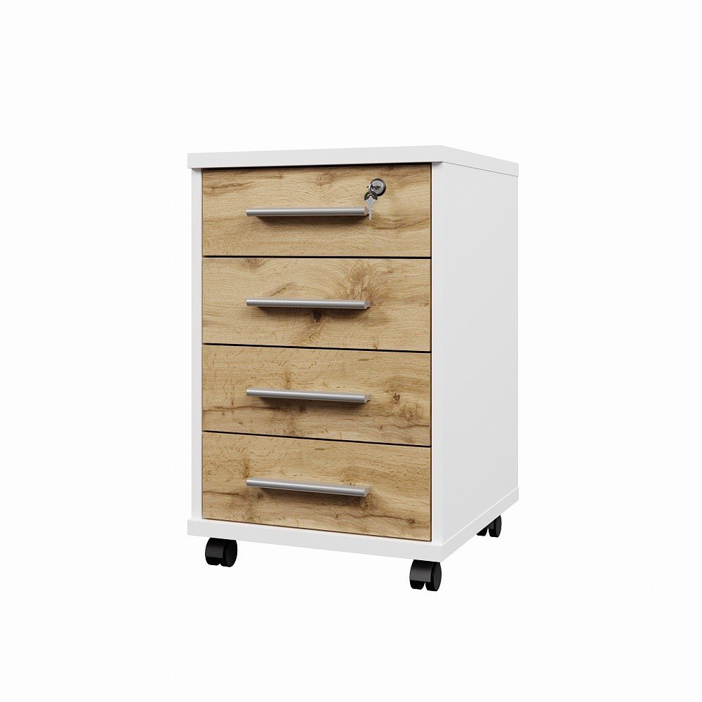 Uzamykatelný kontejner NEJBY GIANNI, bílá/dub wotan