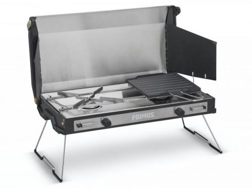 Tento elegantní vařič se 2 hořáky inspirovaný švédským designem je volbou pro začínající kuchaře, kteří rádi praktikují své řemeslo v přírodě. Tento plynový sporák má kapacitu na vaření 5hvězdičkových jídel, ale je lehký a kompaktní, takže si jej můžete vzít kamkoli. Sklopné nohy poskytují cenný dodatečný prostor na stole a mohou se při vaření zablokovat nebo se rozhodnout pro spodní ultrastabilní možnost. Lehce zapálíte kterýkoli hořák pomocí tlačítkového piezo zapalovače. Každý hořák běží nezávisle, což umožňuje vnějším kuchařům vařit více hrnců při širokém rozsahu teplot, přičemž se omáčka pomalu dusí a voda vaří z plamene 10 200 BTU (3 000 W). Ve větrném počasí se víko a boční čelní skla zajistí na svém místě, aby se zajistilo stabilní vaření. Elegantní tělo z nerezavějící oceli, tlakově lité hliníkové boky, dubové lišty a mosazné detaily vylepší vzhled každého kempu a vydrží dlouhá léta používání. Vnitřní podpěry hrnce a odkapávací miska jsou odnímatelné pro snadné čištění. Při skladování jednoduše zamkněte - tento štíhlý vařič lze odložit téměř kdekoli. Dodává se s nepřilnavou deskou, která griluje, opéká, rozpouští sýr a poté se dá snadno čistit.