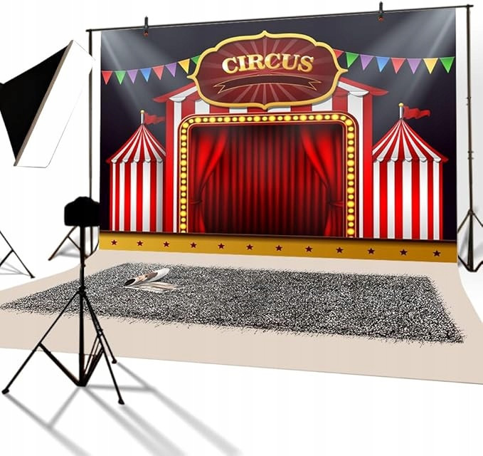 Allegro.czZobrazit historii ceny Vinylové fotografické pozadí. Cirkus, narozeninové pozadí. 4,6 x 3 m
