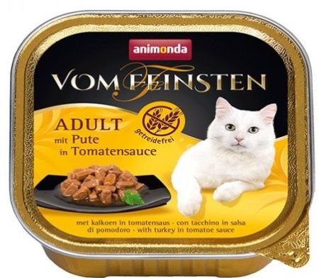 ANIMONDA Cat Vom Krůta v rajčatové omáčce 32x100 g Bezobilné a bezlepkové krmivo pro citlivé kočky, lahodné chuťové varianty s kousky masa a ryb v omáčce, neobsahuje umělé přísady a aromata, s vitamíny a minerályŠťavnaté kousky masa v omáčce, dokonale dochucené v různých aromatických kompozicích se zeleninou a bylinkami: Animonda vom Feinsten NoGrain je zcela bez obilovin a lepku, takže je vhodná i pro citlivé kočky, které mají sklony k zažívacím potížím a alergiím. Kromě toho krmivo poskytuje pro zdraví důležité vitamíny a minerály, které zajistí vašemu miláčkovi pohodu. Když dáte své kočce kousky v omáčce, zároveň ji rozmazlíte a postaráte se o vyváženou stravu. Řada „Vom Feinsten“ obsahuje pouze speciálně vybrané složky a vybrané maso, které společně tvoří přirozené a opravdové jídlo. Receptura krmiva byla vyvinuta na základě nejnovějších poznatků a poznatků odborníků na výživu.Krmivo je mokré a neobsahuje sóju, obiloviny a geneticky manipulované složky a je bez umělých barviv, aromat a konzervantů.Vyvážené krmivo pro dospělé kočky Bezobilná a bezlepková: ideální také pro citlivé kočky s citlivým trávicím systémem, alergiemi a zažívacími potížemi S kousky masa a ryb: lahodné kousky v omáčce, rozmanité chuťové varianty Dodává potřebné živiny: