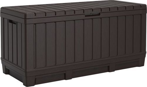 Větší plastový box s úložným prostorem o obsahu 350 l. Kentwood odkládací box umožňuje pohodlně uložit vše, co chcete mít po ruce na Vaší zahradě. Vyznačuje se velkou kapacitou, díky tomu se do něj vejde například - zahradní nářadí, polštáře nebo přikrývky. Jeho montáž je velmi jednoduchá a nevyžaduje žádné specializované nástroje.