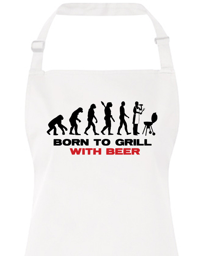 Zástěra s laclem s potiskem Narozen pro grilování - zástěru ocení každý mistr grilu