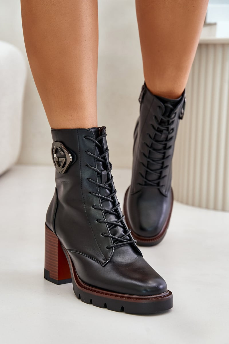 Boty Vinceza vyrobené z vysoce kvalitní eko kůže jsou stylovou a praktickou volbou na podzimní a zimní sezónu. Jsou umístěny na stabilním sloupkovém podpatku, který zajišťuje pohodlí při nošení a dodává eleganci každému outfitu. Model má jak šněrování, tak zip, což usnadňuje obouvání a přizpůsobení noze. Svršek je zdoben jemným detailem. Vnitřek je zateplený filcem, což zaručuje teplo a pohodlí i v chladnějších dnech. Při výběru velikosti se řiďte tabulkou velikostí.