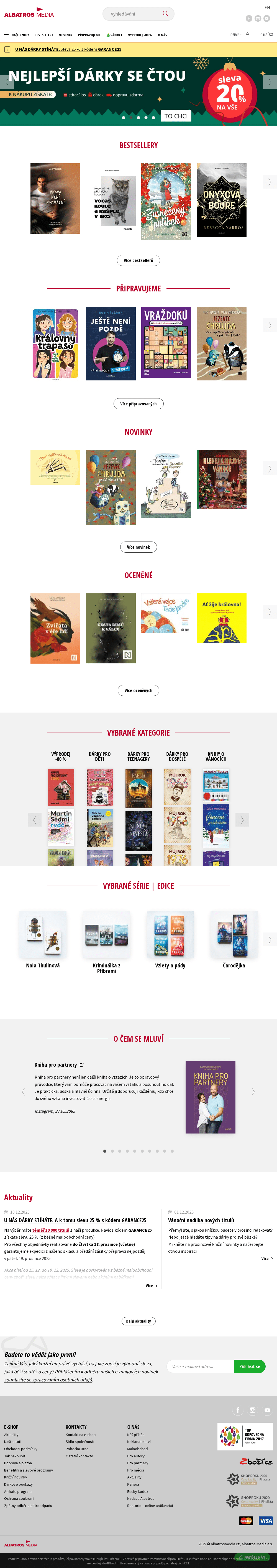 ALBATROS MEDIA - knihy největšího českého nakladatelského domu ALBATROS MEDIA, které zaštituje nakladatelství Albatros, CooBoo, Motto, XYZ, Edika, BizBooks, CPress, Computer Press, Management Press, B4U Publishing, Fragment, Egmont, Kniha Zlín, Vyšehrad, Panteon, Domino partnerský projekt Edice České televize a obchod s elektronickými knihami Palmknihy..