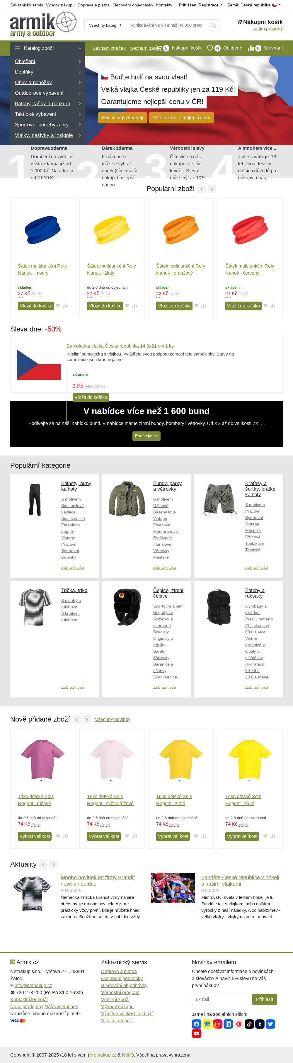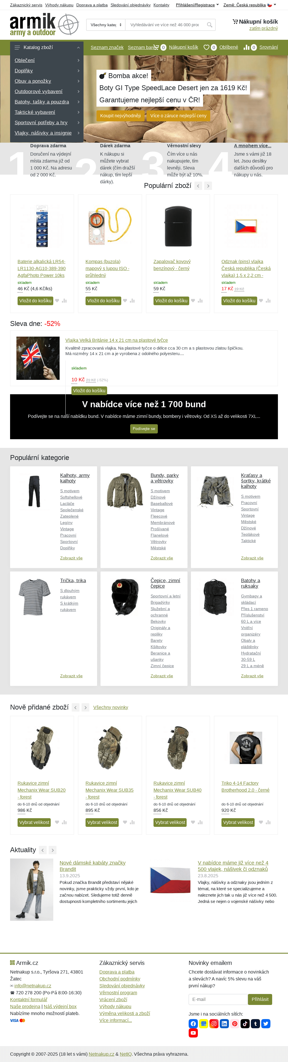 Army shop Armik.cz za skvělé ceny nabízí širokou nabídku vojenské výstroje, outdoorového vybavení a potřeb pro pobyt a přežití v přírodě.