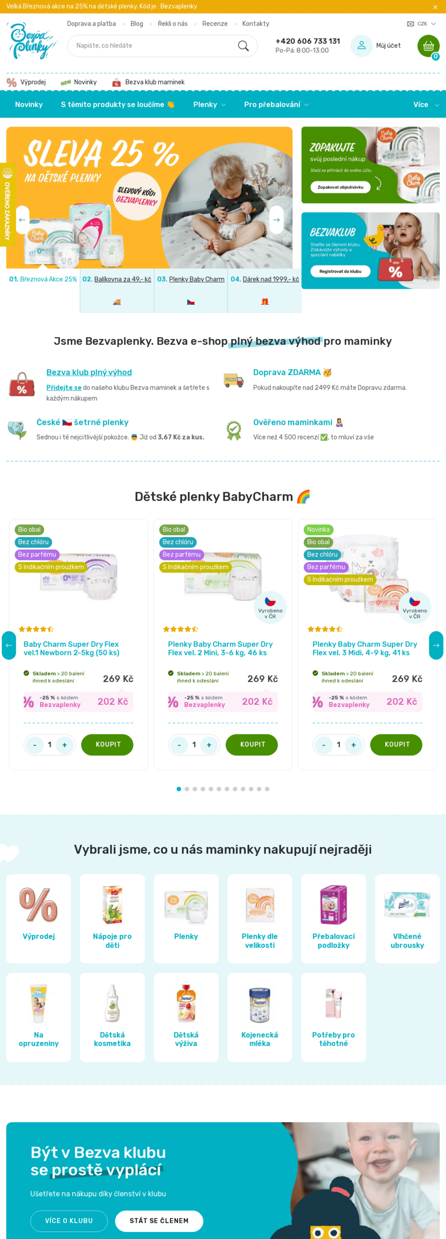 Internetový obchod s šetrnými plenami a plínkami značek Baby Charm, Helen Harper a bio plenkami Moltex