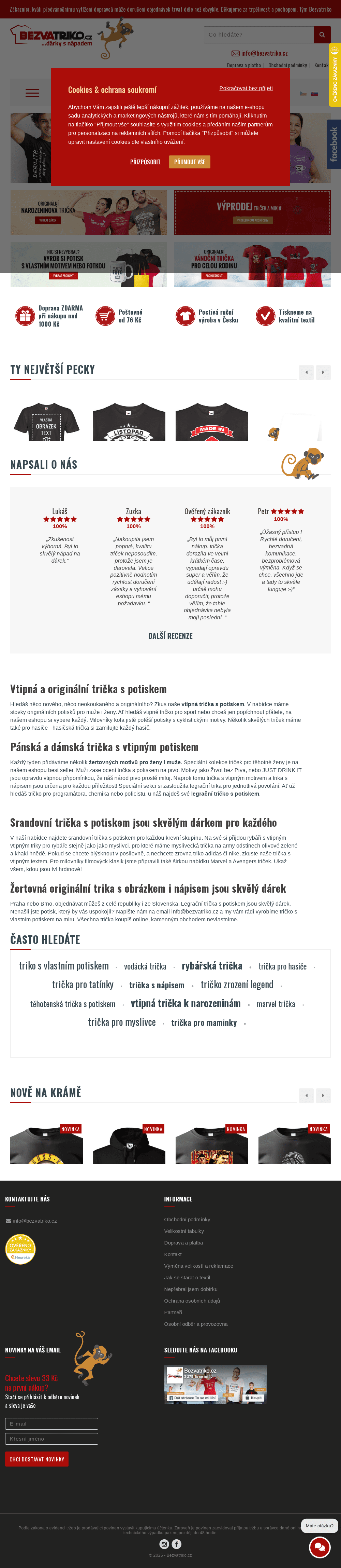 Vtipná trička s potiskem a vtipnými motivy - pánská, dámská, dětská, mikiny. Vlastní potisky.