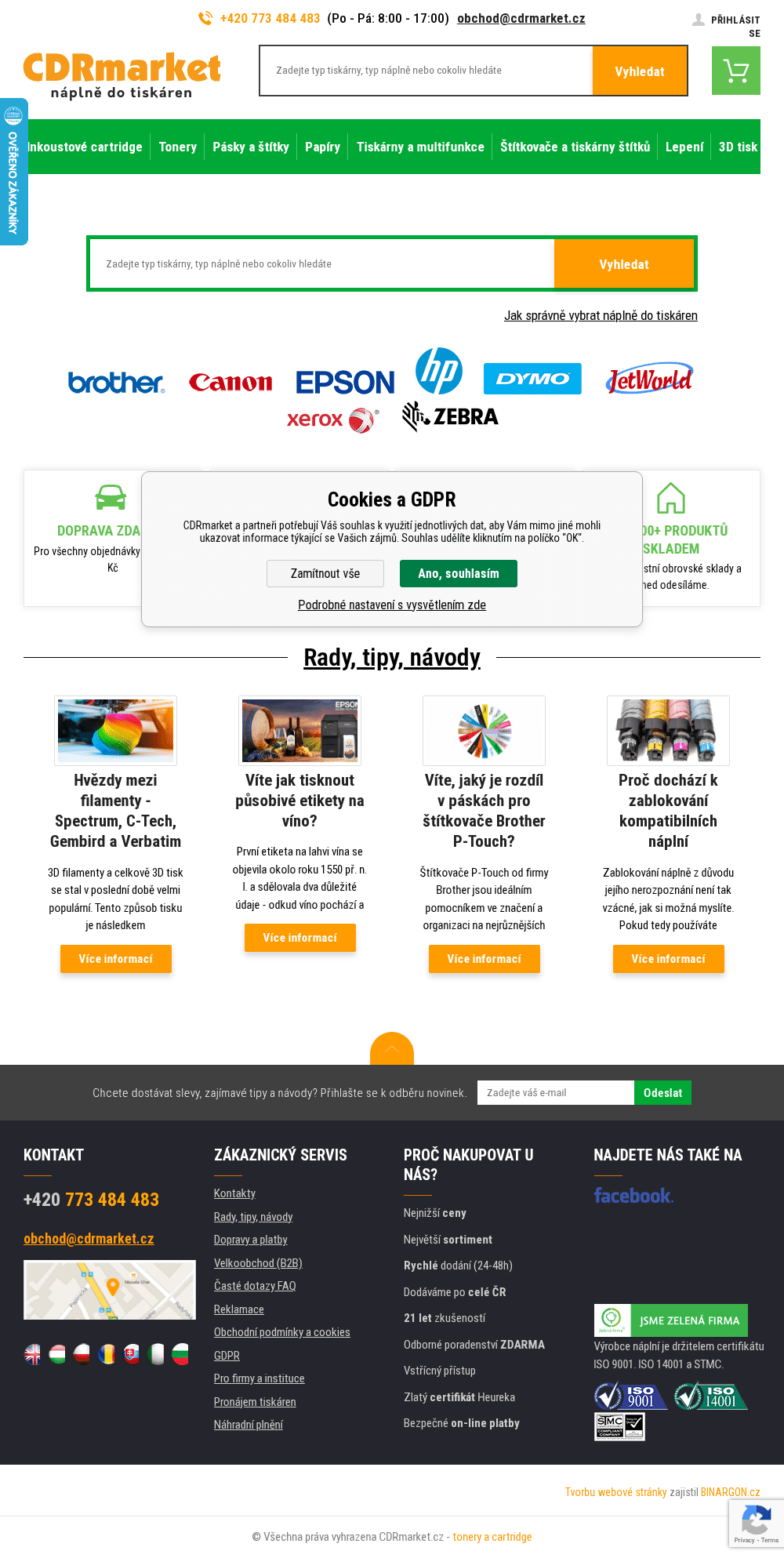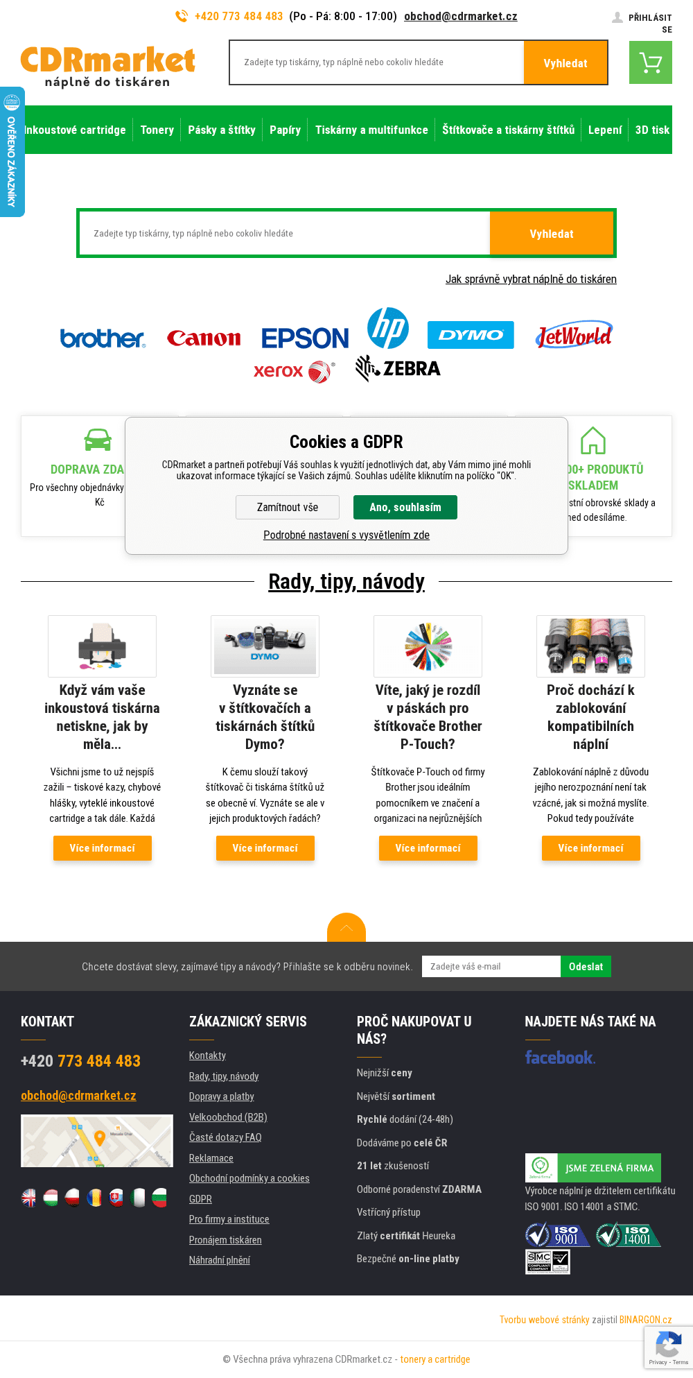 Tonery a inkoustové cartridge do tiskáren. Kancelářské potřeby. Náhradní díly.