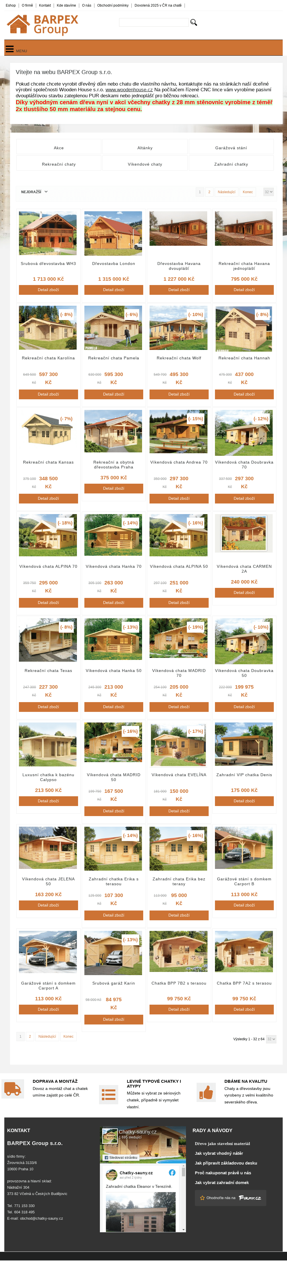 Prodej a montáž dřevěných chat, víkendových a zahradních chatek, domků na nářadí a saun. Rozvoz a montáž po celé ČR, nabízíme i montáž na rám se zemními vruty.