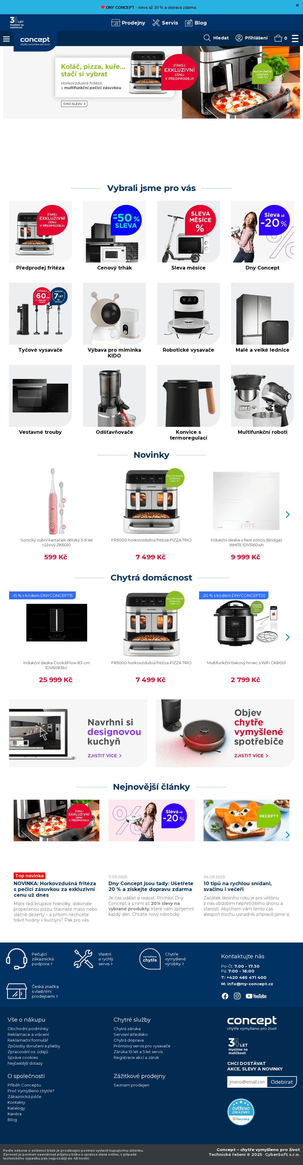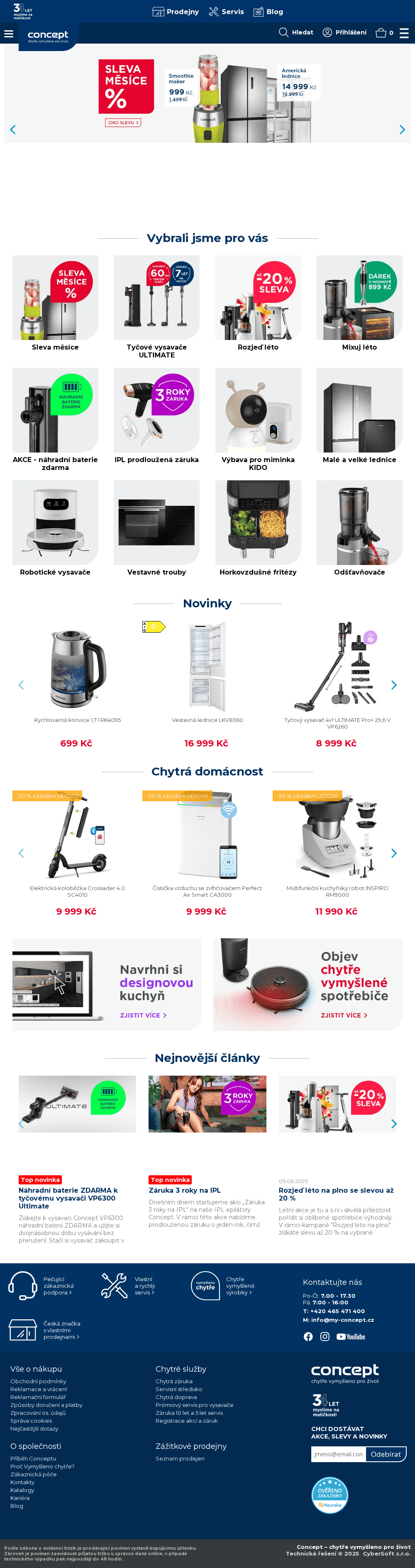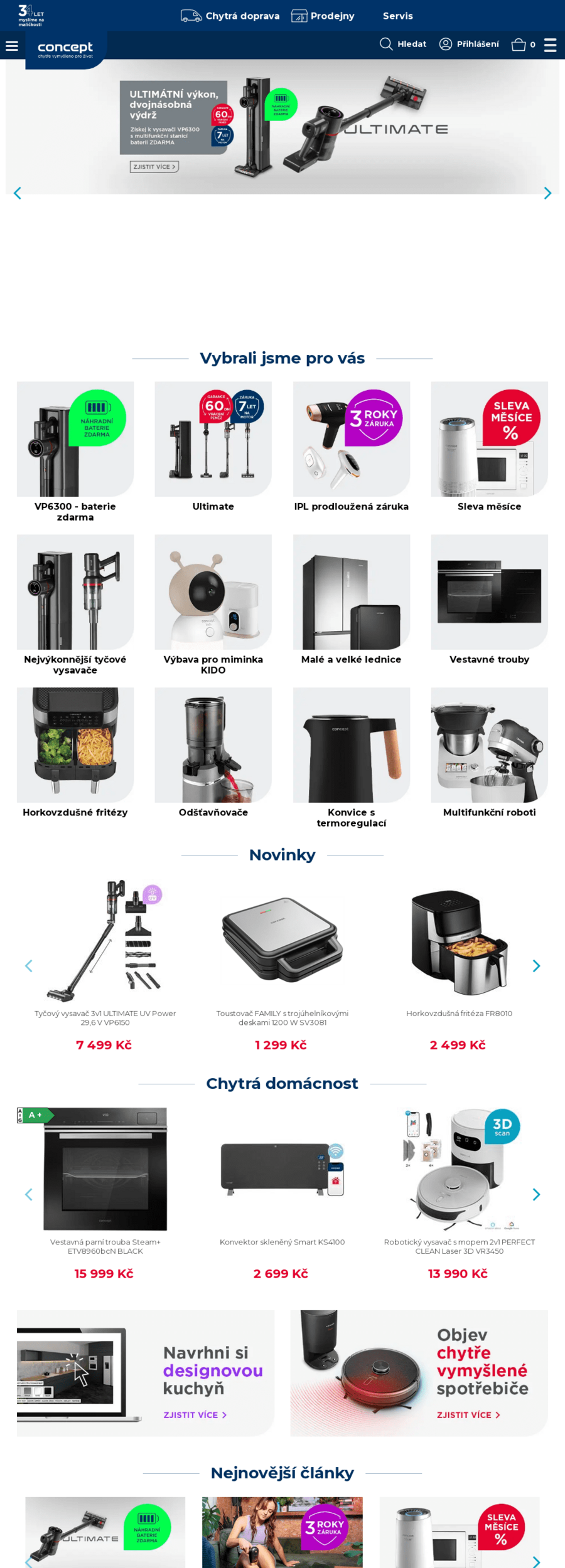 Concept - chytře vymyšleno pro život. Malé spotřeby pro úklid vaření. Volně stojící a vestavné spotřebiče. Digestoře. Designové linie spotřebičů. Elektrokoloběžky.