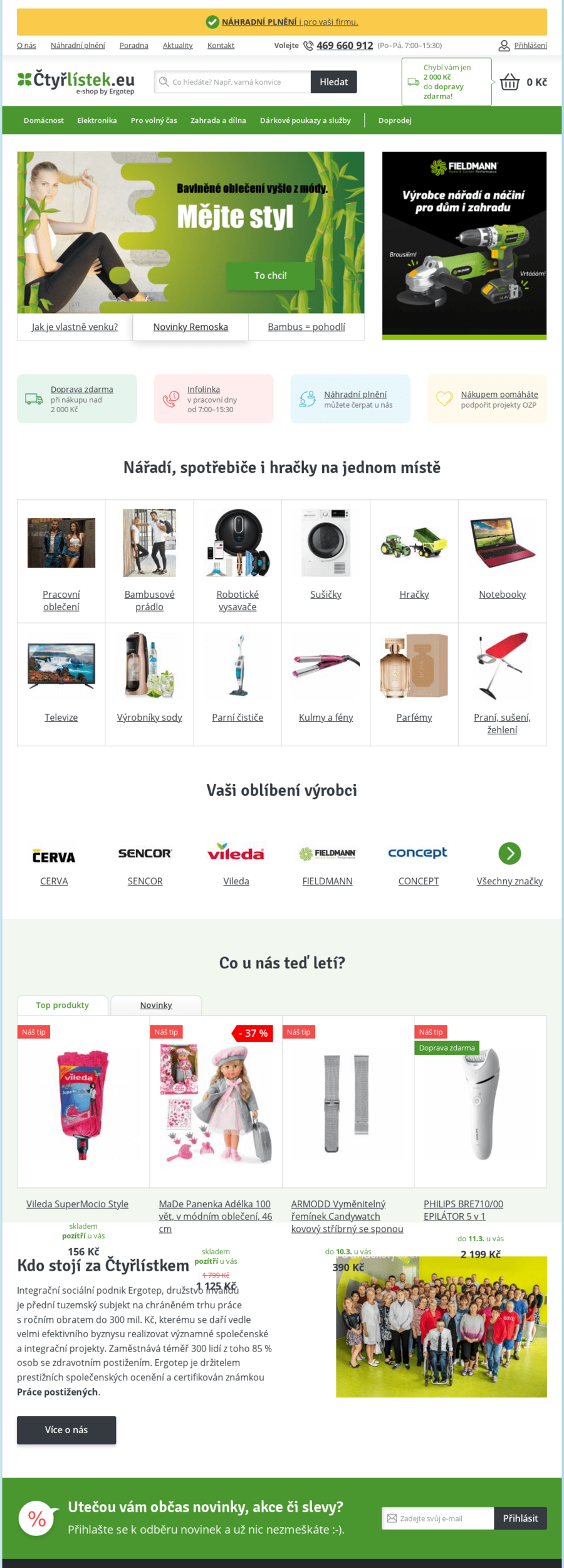 Nákupní centrum Ctyrlistek.eu nabízí stovky položek kvalitního zboží za výhodné ceny. Prozákaznický přístup a férové jednání je samozřejmostí.
