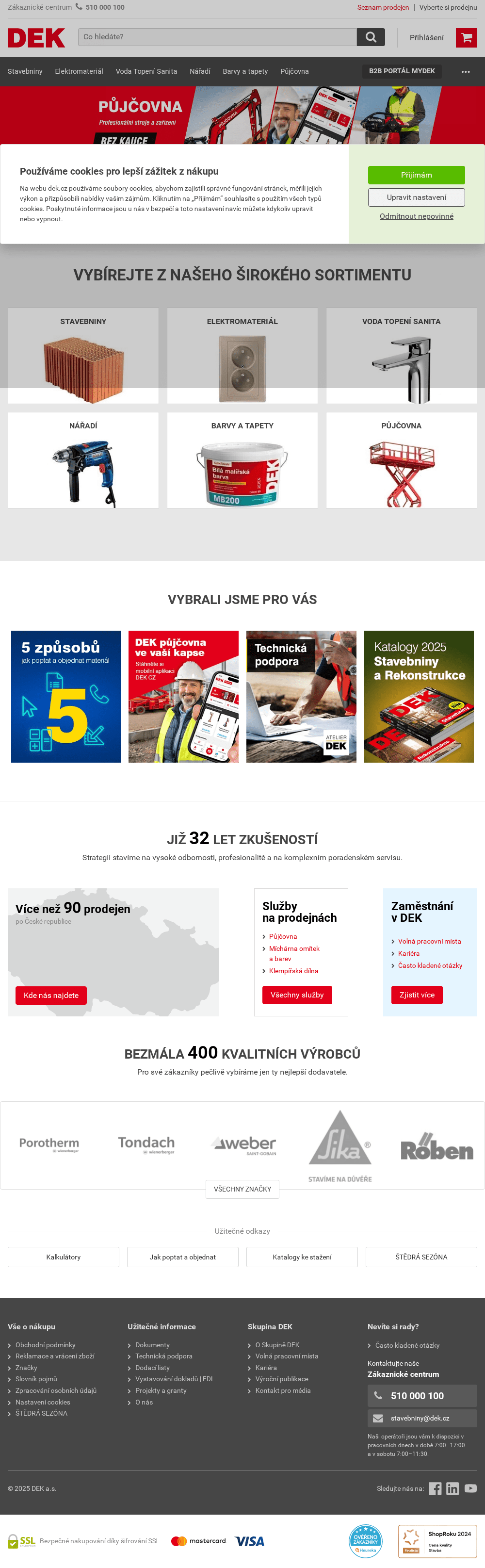 Stavební materiály, materiály pro střechy, fasády a izolace. Největší prodejce stavebních materiálů v ČR. Široká síť 75 kamenných poboček. Půjčovna strojů a nářadí.