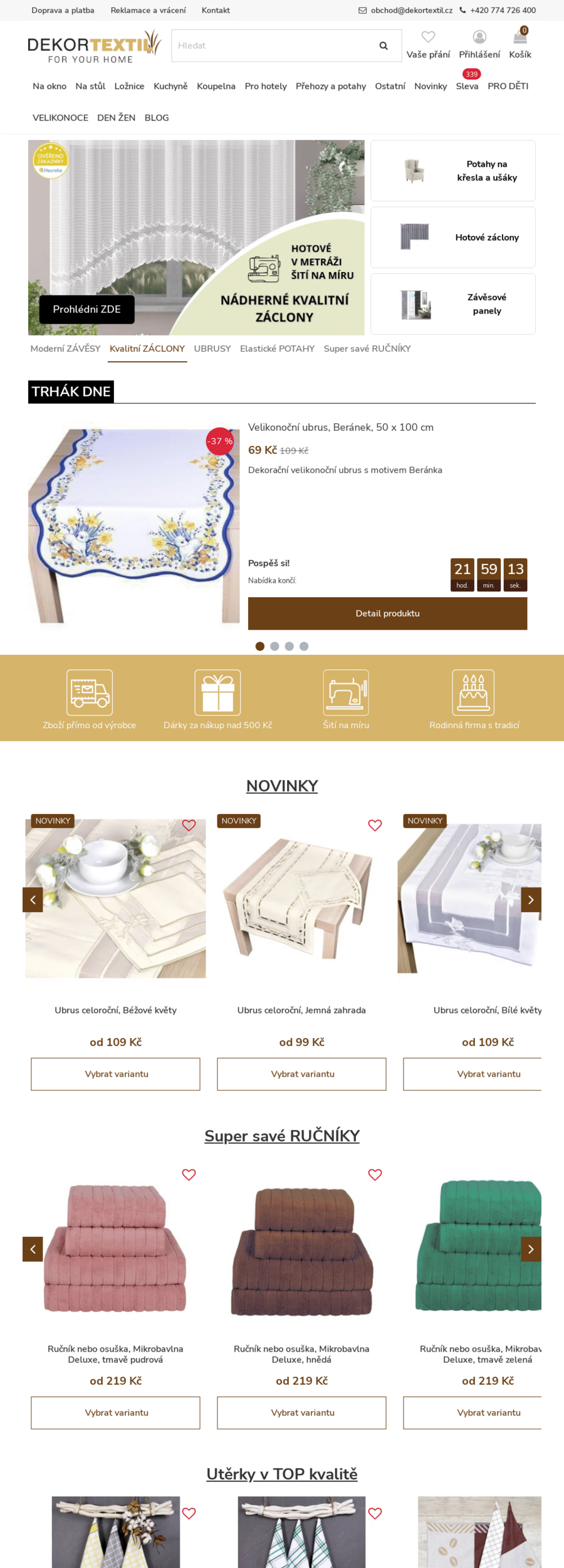 Specialista na bytový textil a dekorace. Záclony, ubrusy, povlečení.