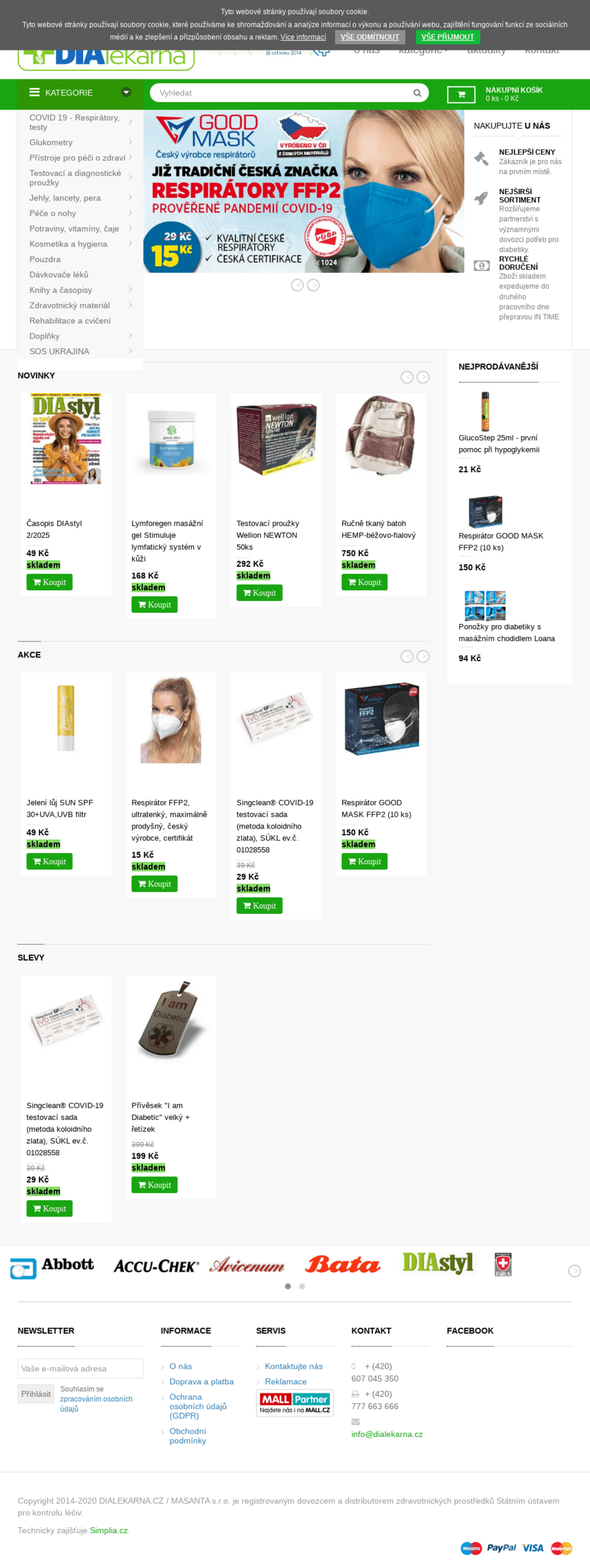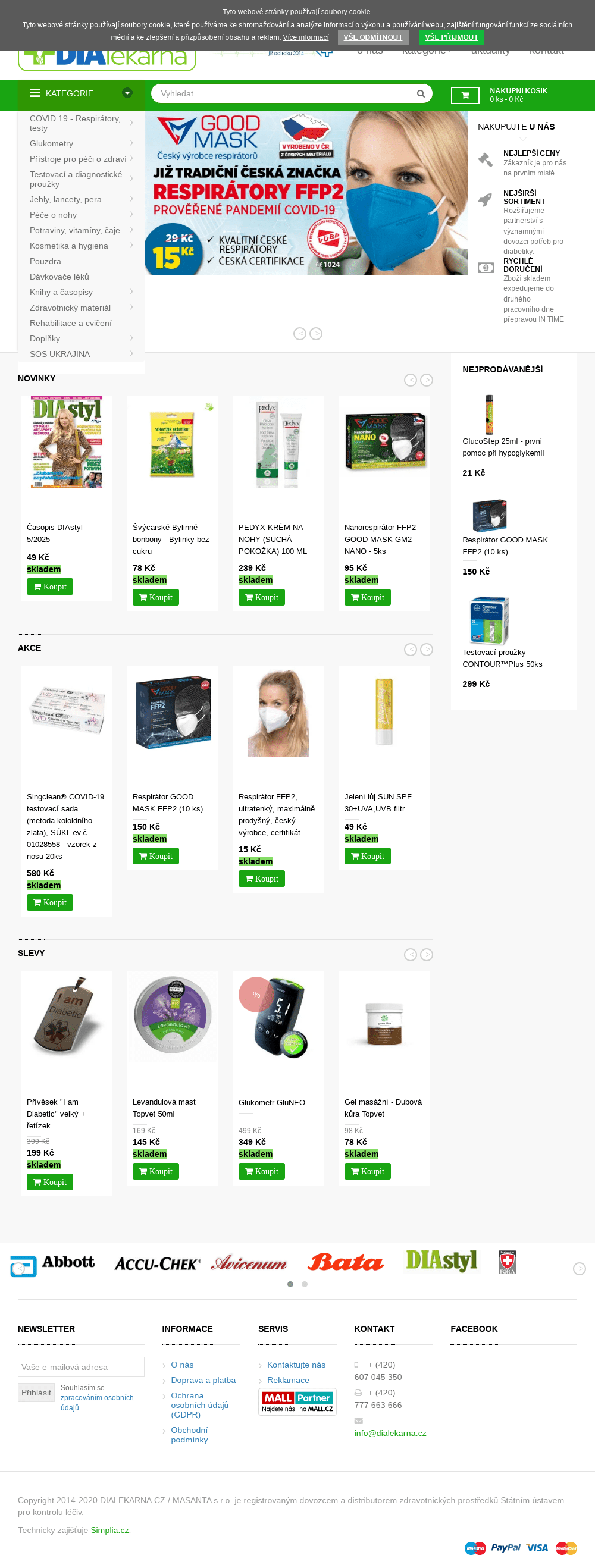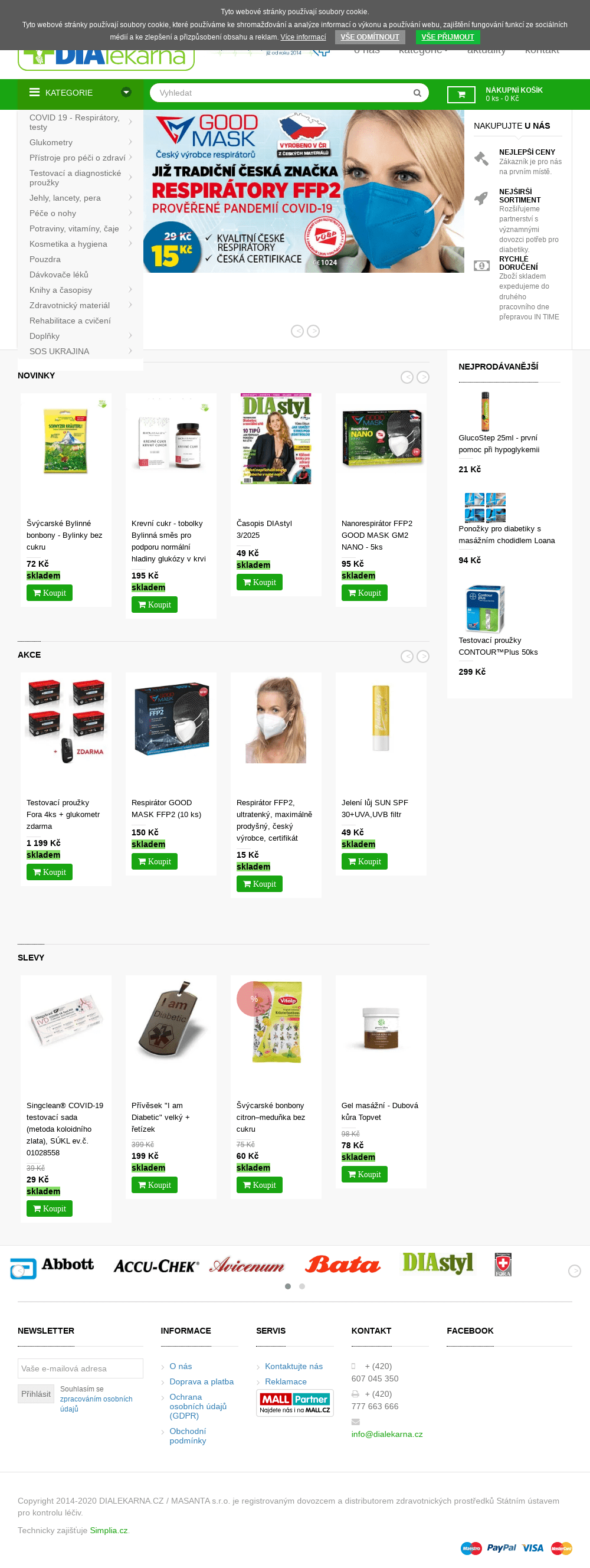 Kompletní sortiment pro diabetiky. Jednorázové ochranné prostředky - roušky, respirátory. Desinfekce. Testy. Zdravotnické potřeby. Kosmetika a hygienické potřeby.
